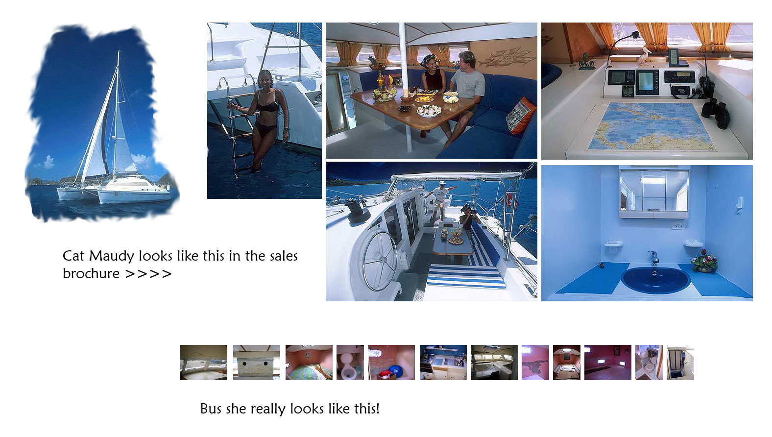We make another trip to visit Cat Maudy. We meet with the broker, and owners – Werner and Alice. Pat and Werner immediately hit it off. I like Alice. She’s got spunk. And yes, she’s still mad at Werner. Pat and Werner begin working on Cat Maudy – fixing her up. No no, we haven’t bought her yet….but these two are working together, and fixing up Cat Maudy. Very strange. For the next 4 months, Pat works on Cat Maudy, spends time with Werner, and eventually I get into the program. We sanded both hulls, and applied 2 coats of bottom paint. Pat works around the clock on getting Cat Maudy ready for her sea trial. We still don’t own her….the broker has never seen this type of situation.