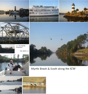 What about the 67′ cable tram. It’s a tram alright. What is the tram for? Well of course – it’s for sending golfers in Myrtle Beach from the east side of the golf course on the intercoastal – to the west side of the golf course. Now, when these trams go across the intercoastal, the tram cars drop FAR BELOW the 67′ cable….so, it’s like a PAC MAN video game for sailors with tall masts – trying to miss (or take out) the trams. The task is to get beyond the tram cars without taking them out with your mast. Seems like a bit of a design flaw by the Army Corp of Engineers….but hey, not nearly as bad as the New Orleans levee system. I digress.