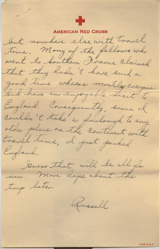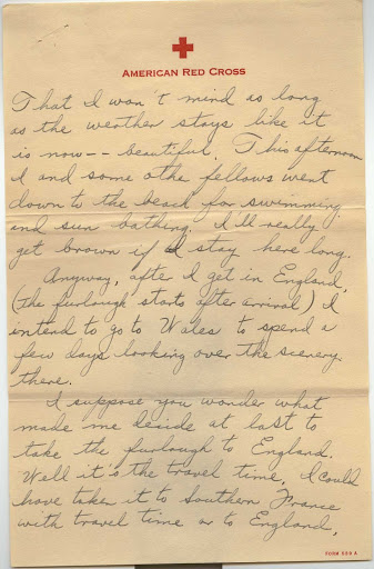 I suppose you wonder what made me decide at last to take the furlough to England. Well it’s the travel time. I could have taken it to southern France with travel time on to England, but nowhere else with travel time. Many of the fellows who went to southern France claimed that they didn’t have such a good time whereas mostly everyone did have an enjoyable visit to England. Consequently, since I couldn’t take a furlough to any other place on the continent with travel time, I just picked England.