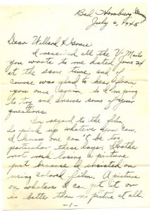 Well, it’s time to go down and eat now, so I guess I’ll close off. We had ice cream for dinner yesterday and for dinner today. Also yesterday the ice cream freezer exploded in some manner and sent the mess sergeant to the hospital. One of those freak accidents.