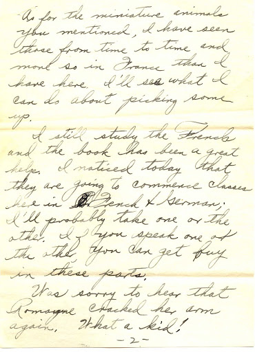 I still study the French and the book has been a great help. I noticed today that they are going to commence classes here in French and German; I’ll probably take one or the other. If you speak one or the other, you can get by in these parts.