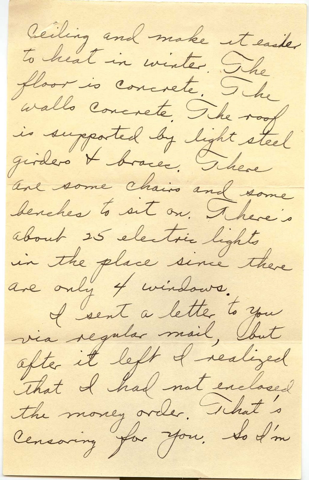 I sent a letter to you via regular mail, but after it left I realized that I had not enclosed the money order. That’s censoring for you. So I’m putting it in now.