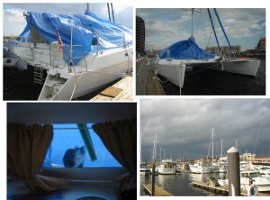 Bracing for high winds, cold temperatures and rain, topped off with a cracked salon window, meant we needed to protect the salon from the weather. We purchased the largest blue tarp sold by Home Depot, “Big Blu”, and spent the afternoon trying to tie it down. Big challenge. Our first big test was just hours away. A cold front was moving in bringing 50 knot gusts.