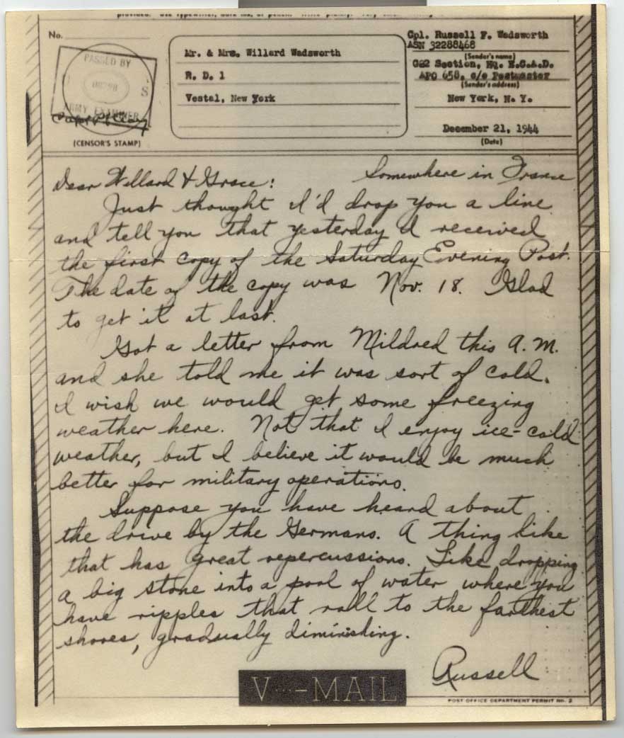 Got a letter from Mildred this A.M. and she told me it was sort of cold. I wish we would get some freezing weather here. Not that I enjoy ice cold weather, but I believe it would be much better for military operations.