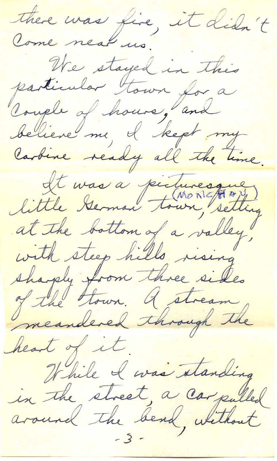 It was a picturesque little German town, setting at the bottom of a valley, with steep hills rising sharply from three sides of the town. A stream meandered through the heart of it.