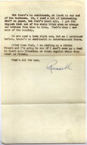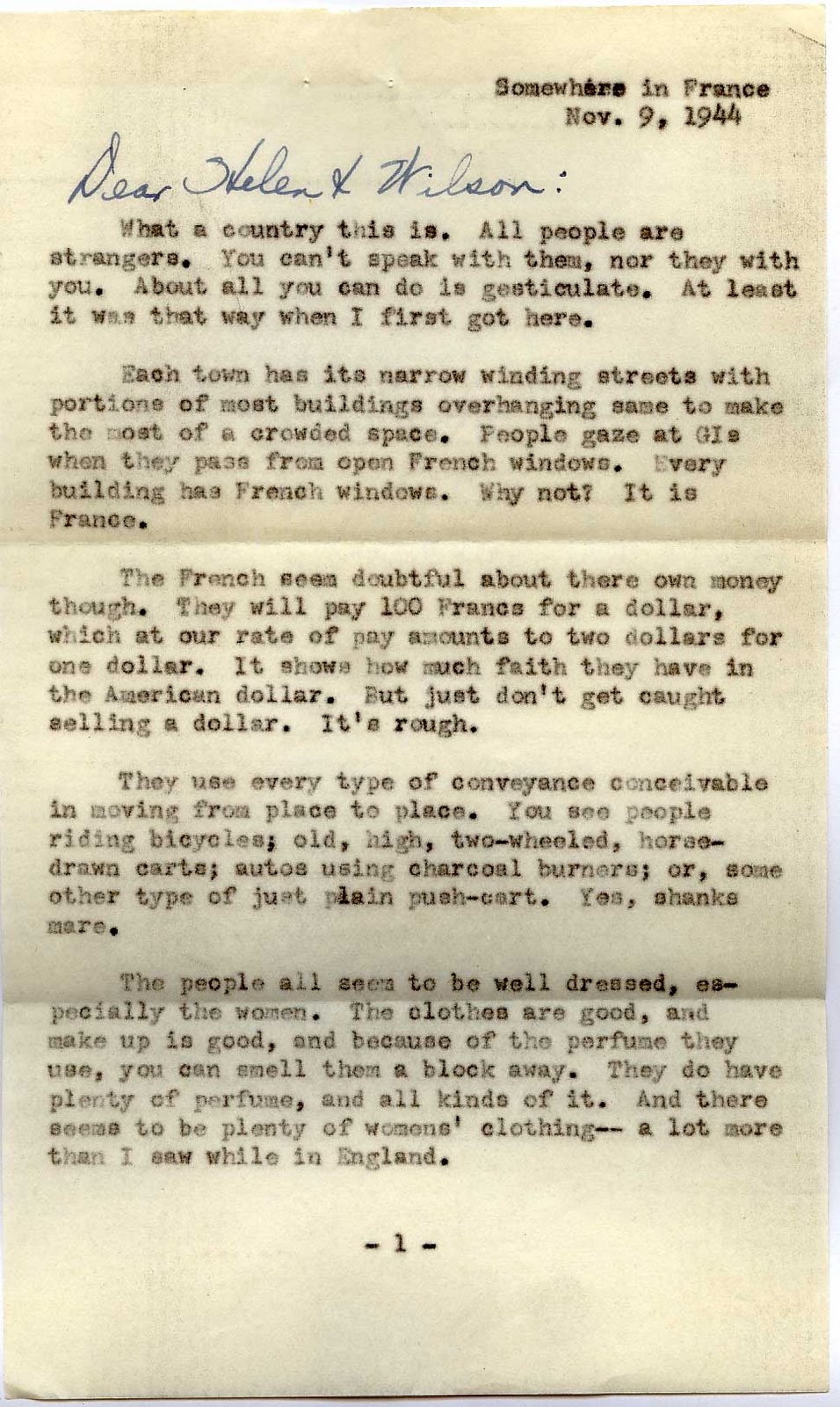 The French seem doubtful about there own money though. They will pay 100 Francs for a dollar, which at our rate of pay amounts to two dollars for one dollar. It shows how much faith they have in the American dollar. But just don’t get caught selling a dollar. It’s rough.