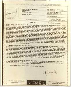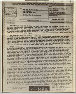 Now after you read this letter, why don’t you sit down and drop me a line and let me know just what the hell you are doing. The only way I find out anything about you is when your wife writes to me. Yeah, I got a letter from her today, and in it was your address, which I didn’t know before. Do you know where I am. No, you don’t. The best way for you to find out, is to place your finger somewhere on a map of France and take a good guess; and one thousand to one you won’t guess right.