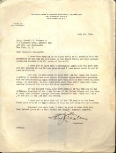 I have been keeping in as close touch as possible with the movements of the IBM men and women in the Armed Forces and have enjoyed receiving letters from all parts of the world.
