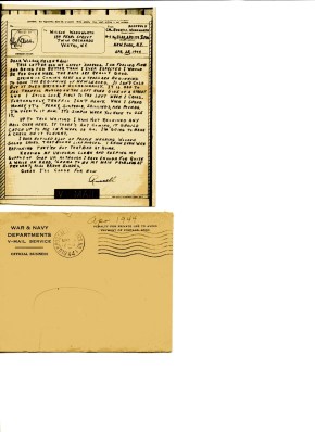 This letter has my latest address. I’m feeling fine and being fed better than I ever expected I would be fed over here. The eats are really good.
