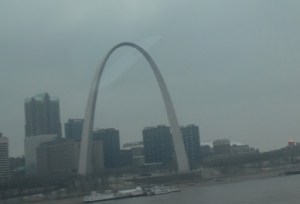 yippee – we just crossed the Mississippi – and I kept staring at that big ARCH – which represents the GATEWAY to the WEST. I stared at it so long as I was driving, that I accidentally got off I-70, and magically appeared at a parking lot RIGHT next to the ARCH. How lucky is that?