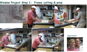 With the help of my bro, Chuck – and his well equipped workshop in the ‘burbs, plywood was cut to size to match 12 window portal dimensions.