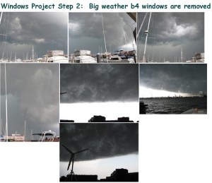 No window project can start, until the daily storm and weather systems pass by. With winds up to 40 knots, and rain appearing as horizontal sheets – we were excited about removing all of the windows that surrounded the salon. May the weather gods cease and desist.