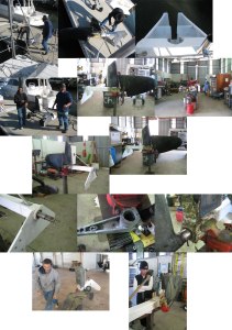 Ronnie and Pat wrestled the rudder off the boat….and wheeled it to the Shop for repairs. The rudder was lifted, so that the shaft could rest on a vice grip….while the bearings and rudder could be dismantled. The end result? The shaft was not bent….the bearings were fine….but the aluminum shaft had corroded around the bearing….causing it to expand and exert pressure on the bearing…and locking up the ability to turn the rudder. Sheezz….a lot of details. I need to go for some exercise.