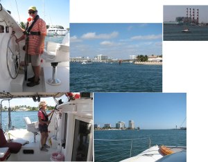 Today’s weather of sunny skies, temperatures in the 70’s, a route less than 2 miles offshore, winds from the west at 10-15 knots, no rolling swells and at most 1 foot waves – were PERFECT sailing conditions….from both Captain Wuus (moi) and Captain Pat’s vantage points. The water color is a stunning turquoise blue here – and it’s easy to become mesmerized by the moment. Cat Maudy reacted with sailing speeds of 7-9 knots. In less than 2.5 hours – we were entering the channel at Port of Miami. (Want to see what the “Perfect Sail” looks like? Watch THIS VIDEO)Looking back at a month of sailing, motoring, and waiting for weather in dreadfully frigid