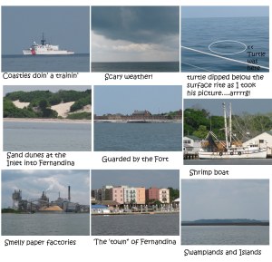 In the east, are a series of paper factories…which smell bad, and dozens of shrimp and fishing boats…which also smell bad. All of these bad smells are attracting a lot of bugs. We waste no time closing all of the hatches. Journals from the road, trails and at sea