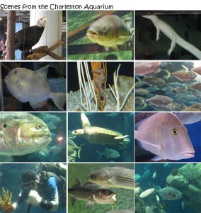 By 11:30AM, slack tide, Paddy and I moved Cat Maudy from one side of the peninsula (on the Ashley River)….to the other side (on the Cooper River) – to dock for a week at the Charleston Maritime Center. The rates were cheap (relatively), and from our new location – we were within easy walking distance of grocery stores, pizza delivery, and the Charleston Aquarium.