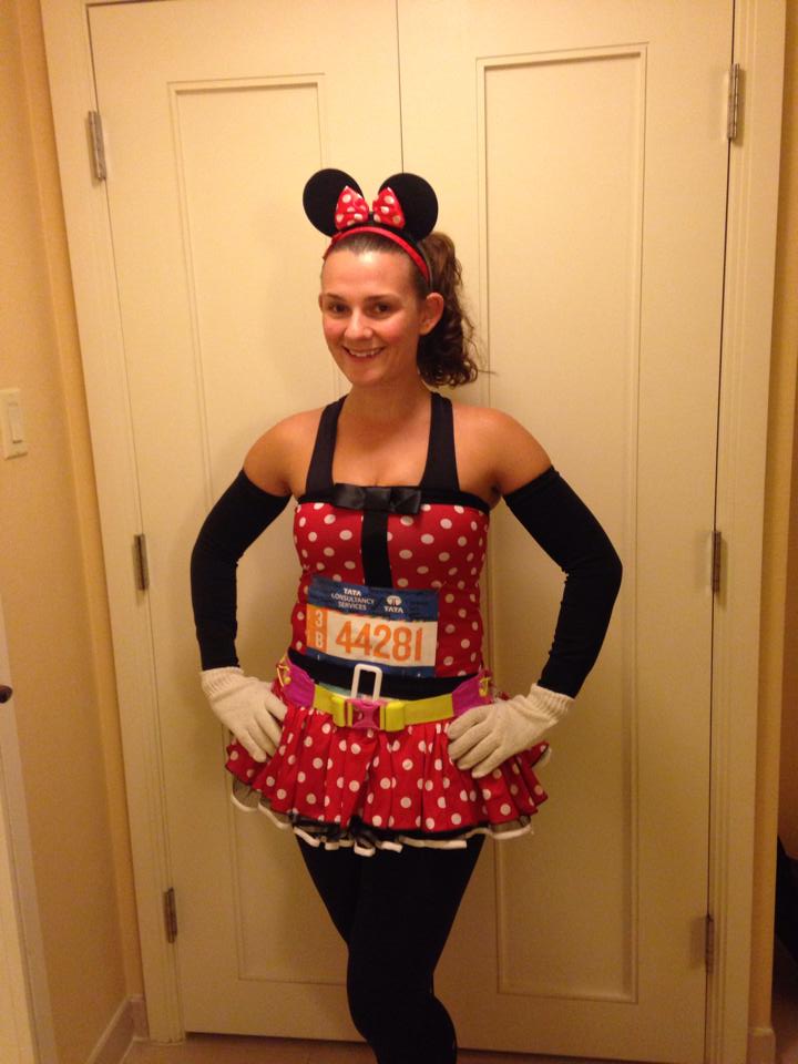 I ran with my step-daughter Emma up until approximately mile 9. It was at this point, that I began to feel the impact of the steady 20mph headwinds. I was already slowing. Emma is a strong runner, and I encouraged her to run her race without me. I was 1/3rd of the race done, and never had any doubts on finishing, but starting to appreciate the extra energy that would be needed to get to the finish line. The intense headwinds were wearing me down, step by step. By mile 11, I saw Emma – decked out in her Minnie-Mouse costume, wowing the crowds – for the last time.
