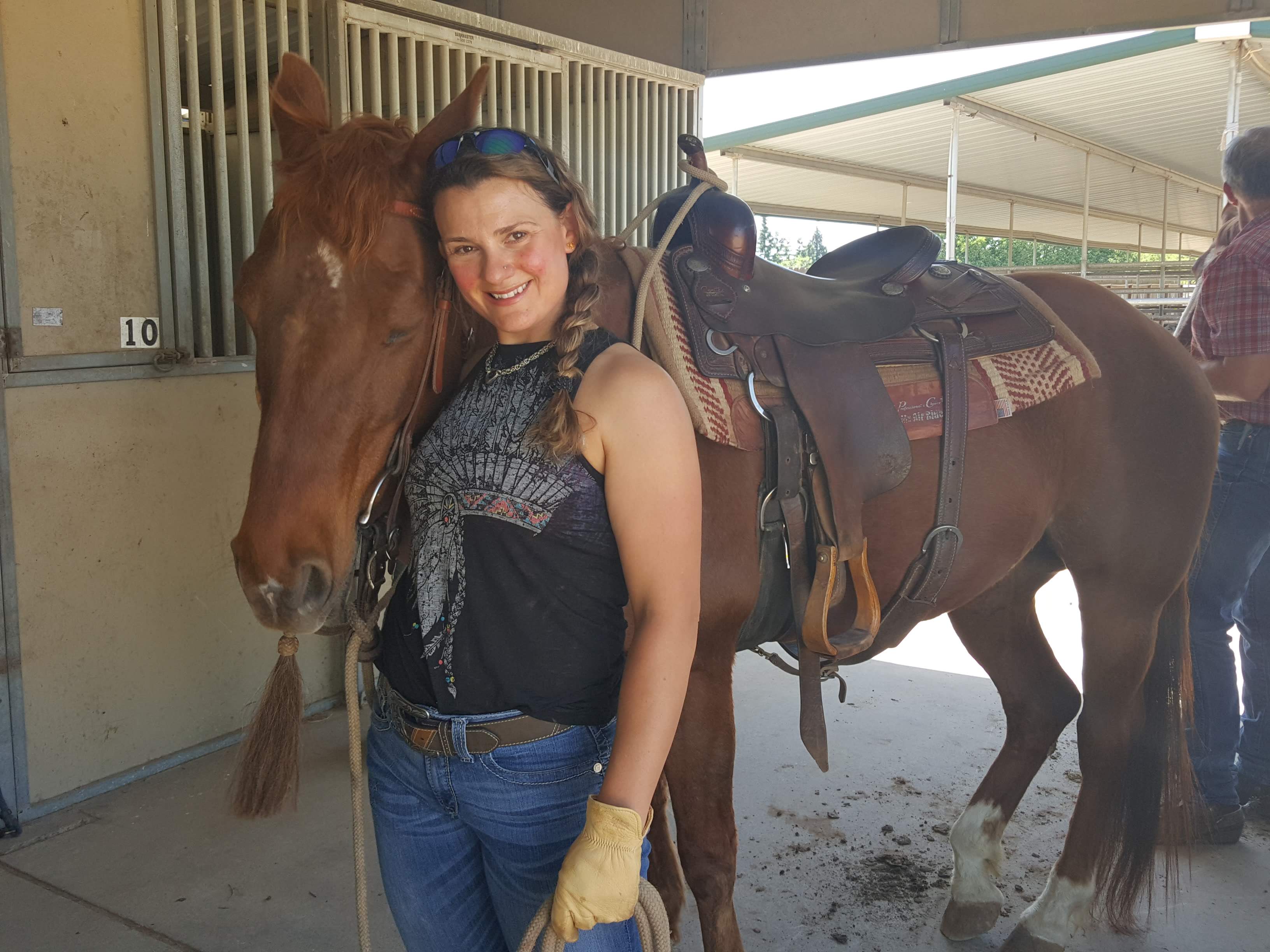 We stopped in Atwater, at Ray’s horse ranch so that Ms. Emma could put on a private rodeo, and while she didn’t actually wield a lasso, she did unveil her horse-riding skills. Living East, Ms. Emma would not have gone near these creatures, but living West, watching the entire Longmire series on NetFlix and taking lessons from Horse Whisperer Ray, she has unlocked a new passion. She brushed the beast, cleaned it’s hooves, combed it’s mane, talked to it, fed it, put on the bridle, made sure the rein had a hint of pink, lifted the saddle and hopped on wearing special riding boots and a helmet. Moments later she had the horse moving where she wanted it to go, stepping forwards, backwards, sideways and always under the watchful eye of Ray who has an uncanny knack of instructing without words.