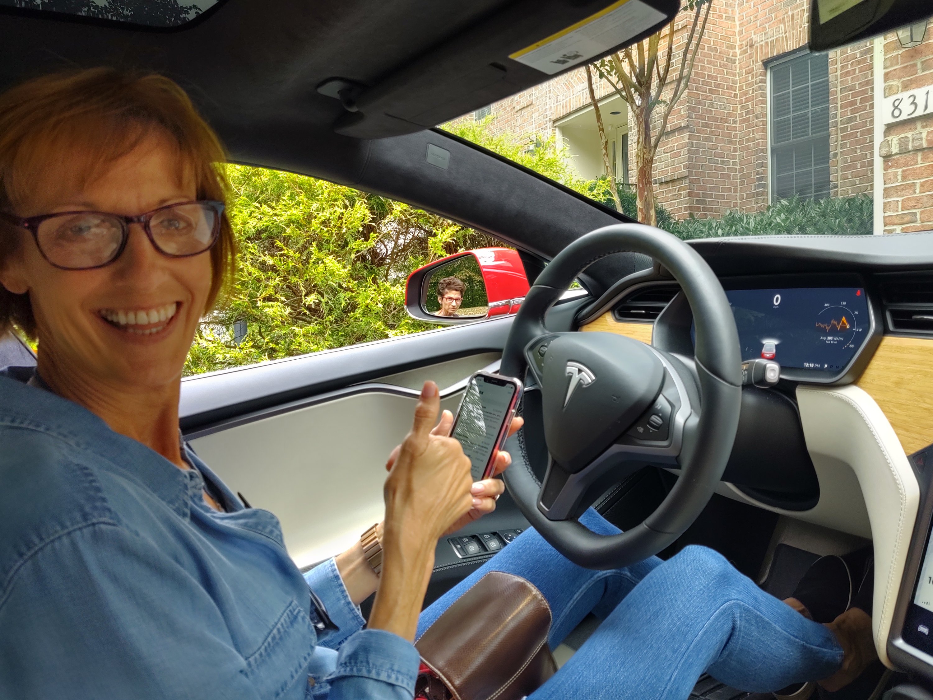 Our final juice stop and driver change put the fearless one back into control just in time to face down black skies, sheets of rain, wind gusts that sent debris airborne and lightning strikes that reached the ground. Lightning bolts lit the dark skies and as other cars slowed, I couldn’t help but to wonder out loud if driving an electric car inside an electrical storm had been thought out properly by Elon. None of that mattered. Ms Andretti floored it, we raced right through that storm and 10 minutes later blue skies returned.