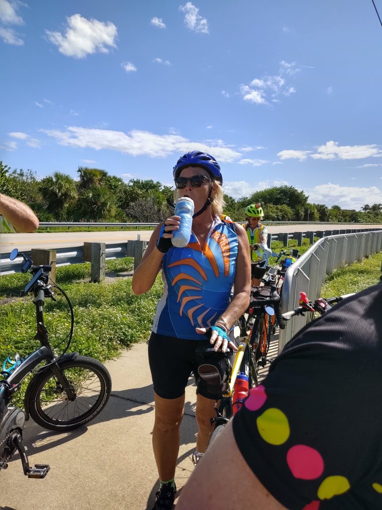 A1A parallels the Atlantic Ocean, and when not blocked by buildings or dunes, we had opportunities to watch the waves crash to shore. When riding in traffic, letting your focus meander to breathtaking views could be a recipe for distracted-bicycling — yet due to a bike / multi-use path apart from traffic — we could ride care-free. We watched the small lizards dart in front of our bike wheels, marveling at their speed and hoping they wouldn’t jump on our legs — they didn’t — and soon we had tallied up 50 miles. It was time for lunch at Sharkey’s in Ft Pierce and a much needed break from the bike saddle.