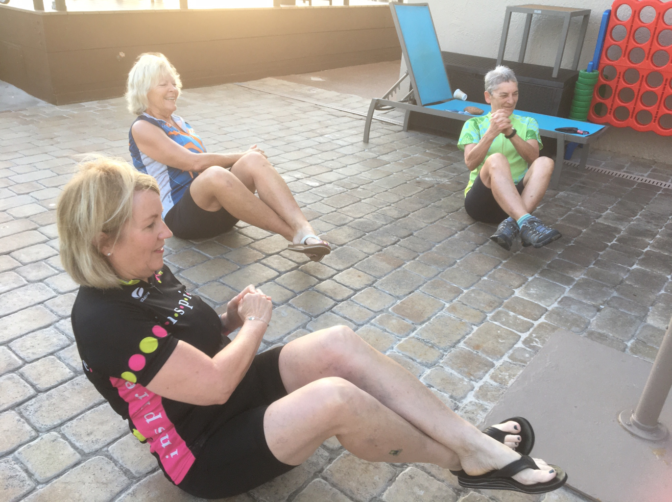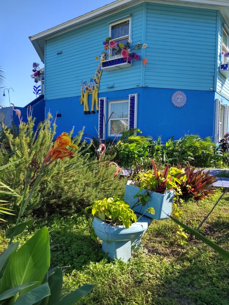 After lunch we rode over two Causeways — both over the ICW. The first Causeway required extreme focus due to high speed vehicles whizzing by and the open grates in the mid section that liked to take your bike on a wobble. This is where my entire front light fixture separated from my bike and dove into the middle lane of oncoming traffic. This is where my bike mates behind me stopped the oncoming vehicle and retrieved my broken parts. It was over-the-top heroic of course, but I had to make a special mention — a shout out to Bad Ass Cave Dave — the same person who rode his bicycle a top a submarine 1 year earlier in plain sight of armed guards. The second Causeway we opted to ride in the pedestrian section — a narrow path large enough for a single bike and a short guardrail that barely prevented you from being blown overdeck by the crosswinds. We braved the Causeways, Cause there is no other Way to get to the barrier island that would be our destination for the night – Hutchinson Island. From there, we returned to an off-road path, and more distracted-bicycling, taking in the sights, and the homes, especially the homes decked in blue paint and dolled up by blue beer bottles — and couldn’t think of a better way to spend our day.