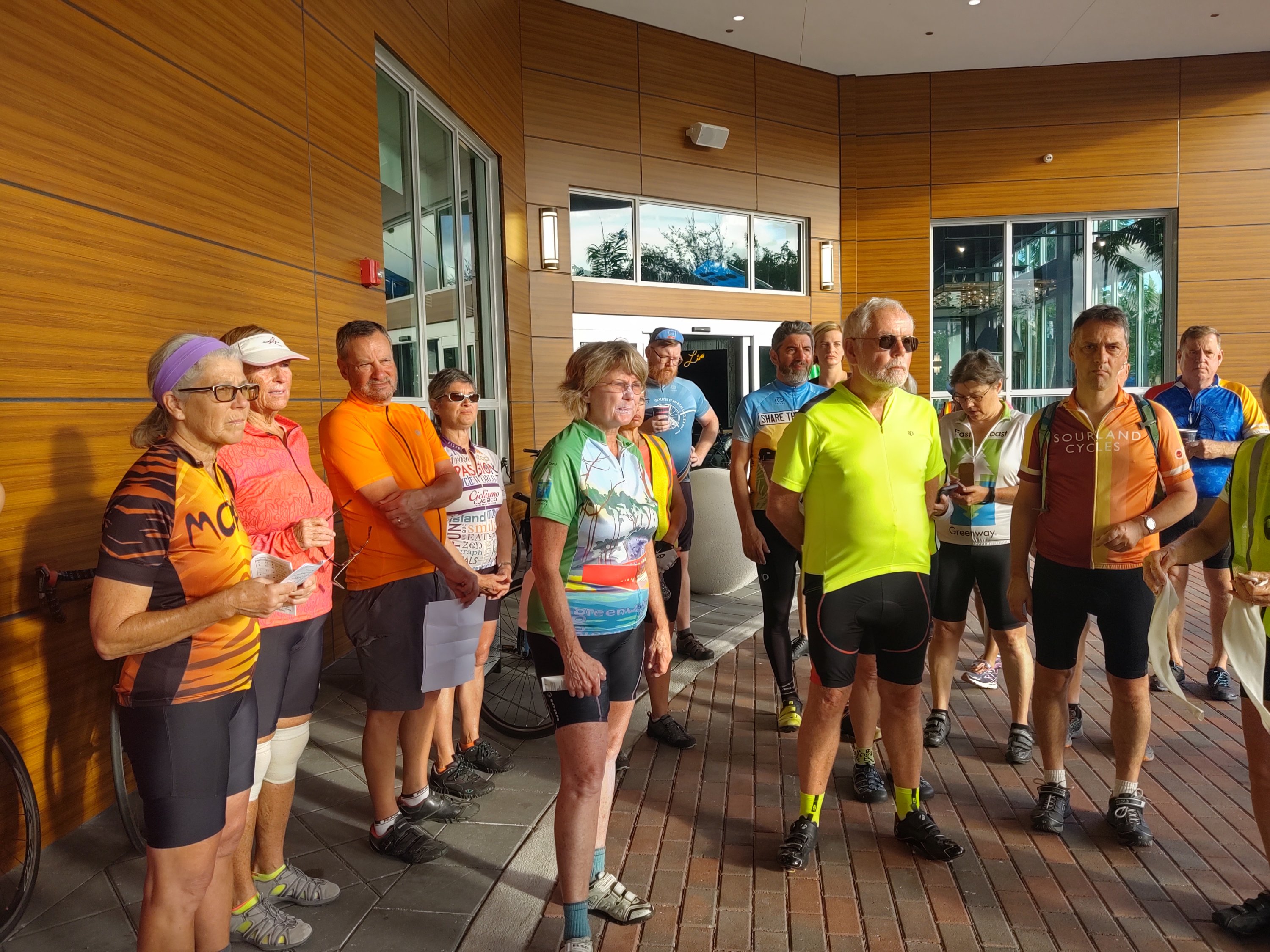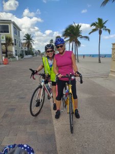 We rode along some paved trails, some trails with 3 inches of sand and when the sand wore us out we returned to A1A closing in on Miami Beach. A1A morphed into a highway with no bike lanes and drivers high on sugar (or other substances) kept our muscles tense and we appreciated the need for safer bicycle travels and off-road trails. But, staying together in small groups we looked out for each other and 54 miles from the start, we safely arrived… Helloooooooooo Miami Beach!
