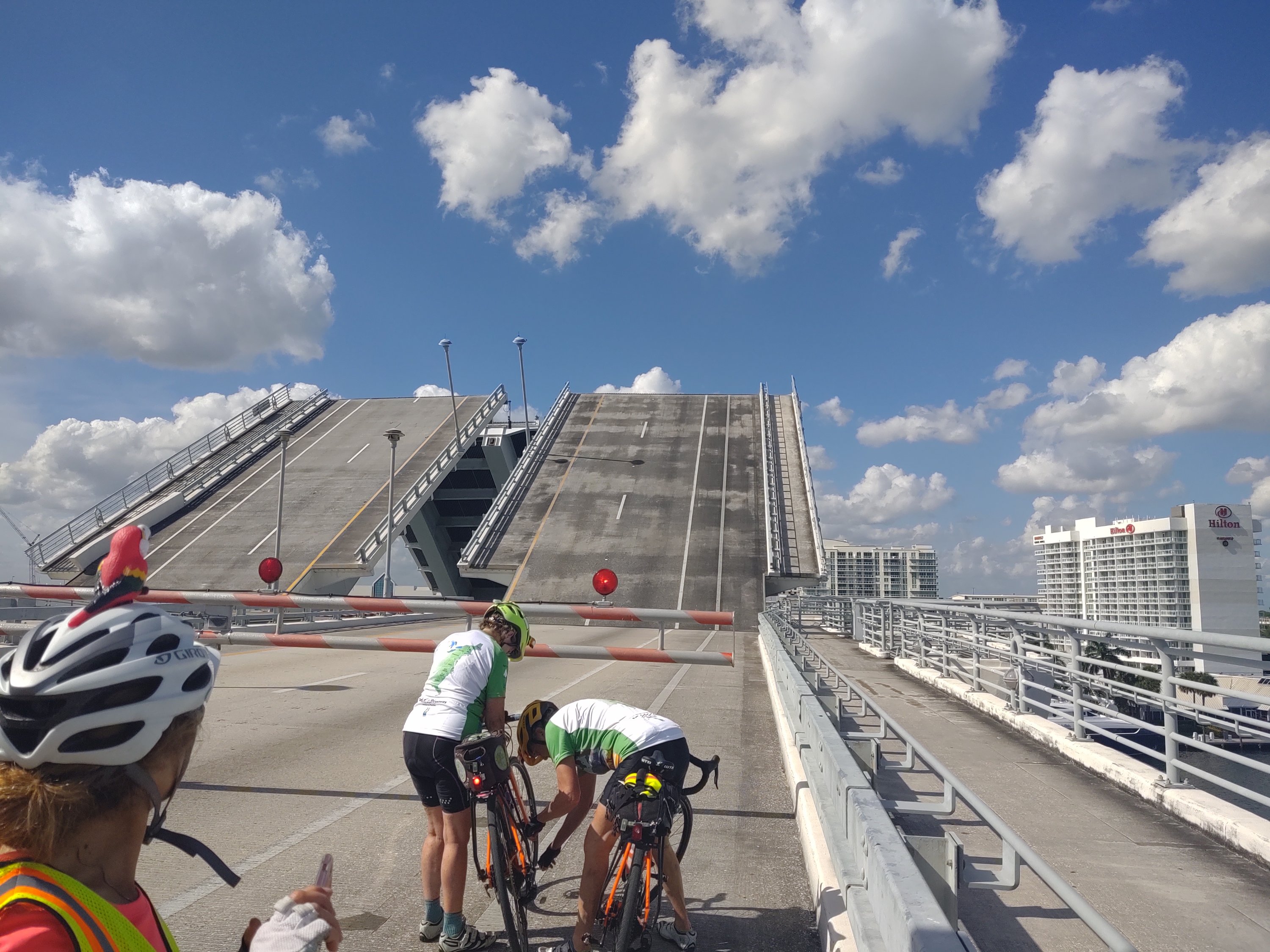 The East Coast Greenway staff noted that we may experience some busy roadways, narrow-to-no shoulders, disappearing bike lanes and being that we made it this far no one seemed to mind. Wheels down and a few stops to double check que sheets or GPS maps we arrived at our first drawbridge crossing out of Delray. We turned right onto A1A, thankful for cloud cover and wondering what one has to do to find a southbound tailwind?