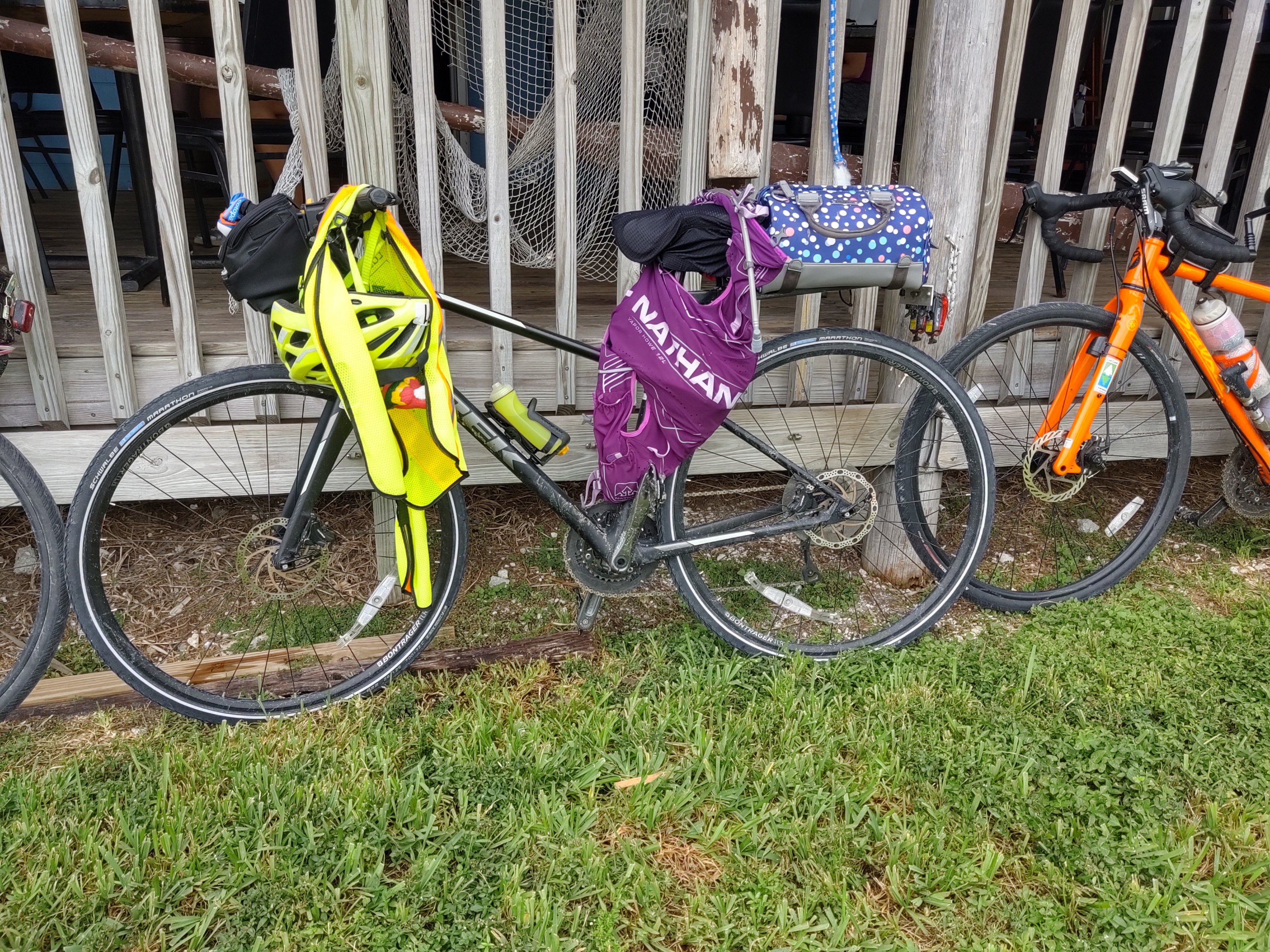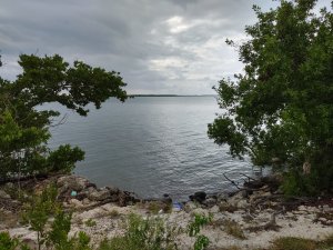 We stopped multiple times — to wipe off sunscreen that wasn’t actually needed but was dripping into burning eyes, to check that phones were staying dry, to check phone GPS’s to make sure we were on course (we were) resulting in getting our phones wet, and discover that Route 1 is the only road heading north or south in the Florida Keys and there was really no need to check the GPS in the rain.