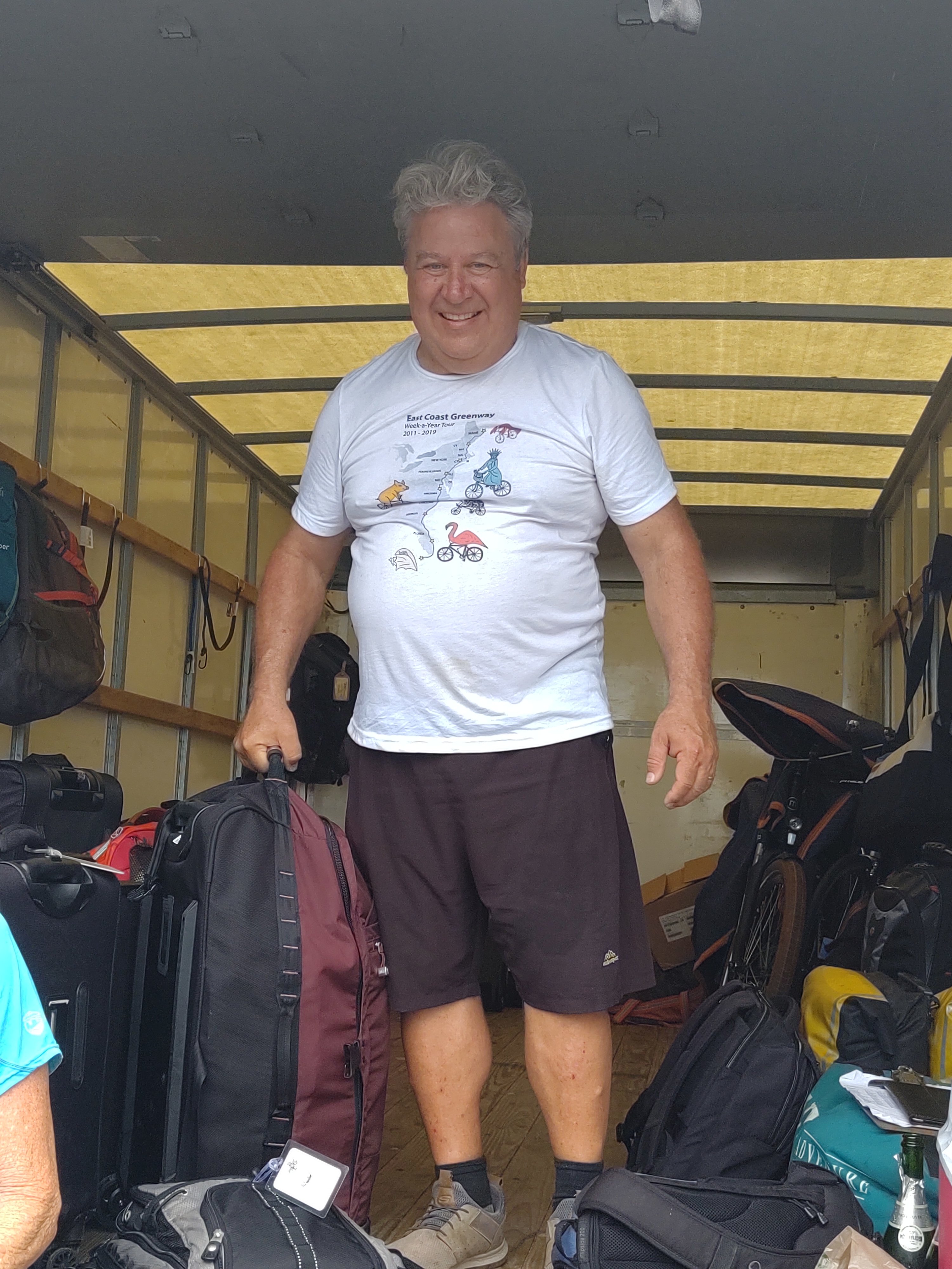 Joining us today on bicycle was a special guest Bill O’Neil — a greenway pioneer now in his mid-80’s – and we cycled together through headwinds arriving at the southernmost point of the US. Greeted by cheers from tourists and Key West residents, we hugged, posed for pictures — both with our mates and those whom we’d just met. The fine celebration continued through the evening and I couldn’t help but to reflect — what a privilege it has been to ride with you all.